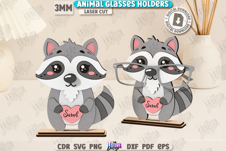 3D Glasses Holder Laser Cut | Eyeglass Stand | Sunglasses Holder | Desk Glasses Holder | Animals Design | Kids Laser | Table Eyeglass Stand | Raccoon SVG | CNC File