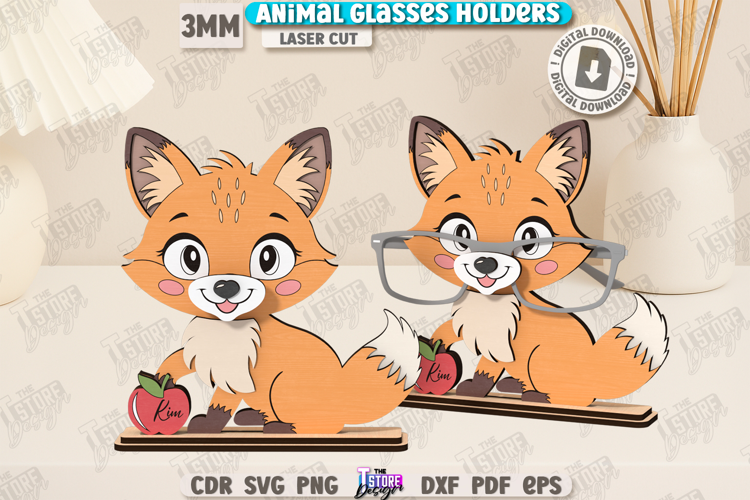 3D Glasses Holder Laser Cut | Eyeglass Stand | Sunglasses Holder | Desk Glasses Holder | Animals Design | Kids Laser | Table Eyeglass Stand | Fox SVG | CNC File