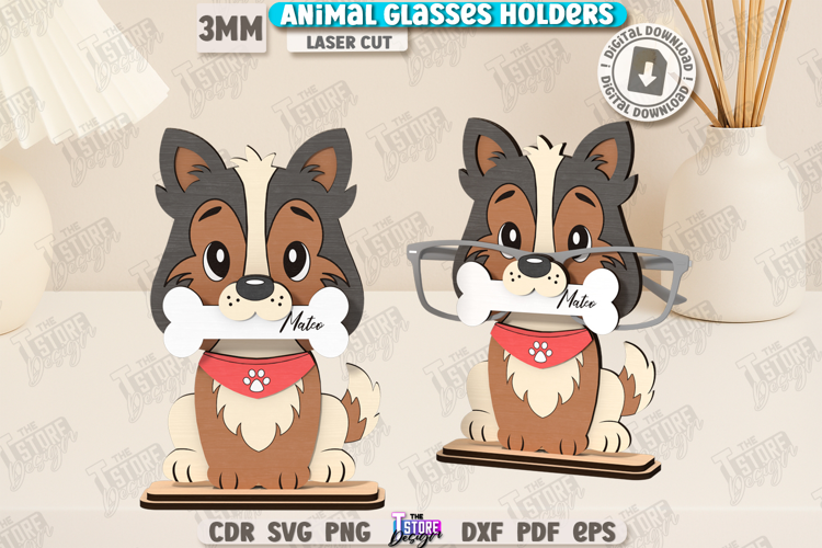 3D Glasses Holder Laser Cut | Eyeglass Stand | Sunglasses Holder | Desk Glasses Holder | Animals Design | Kids Laser | Table Eyeglass Stand | Dog SVG | CNC File