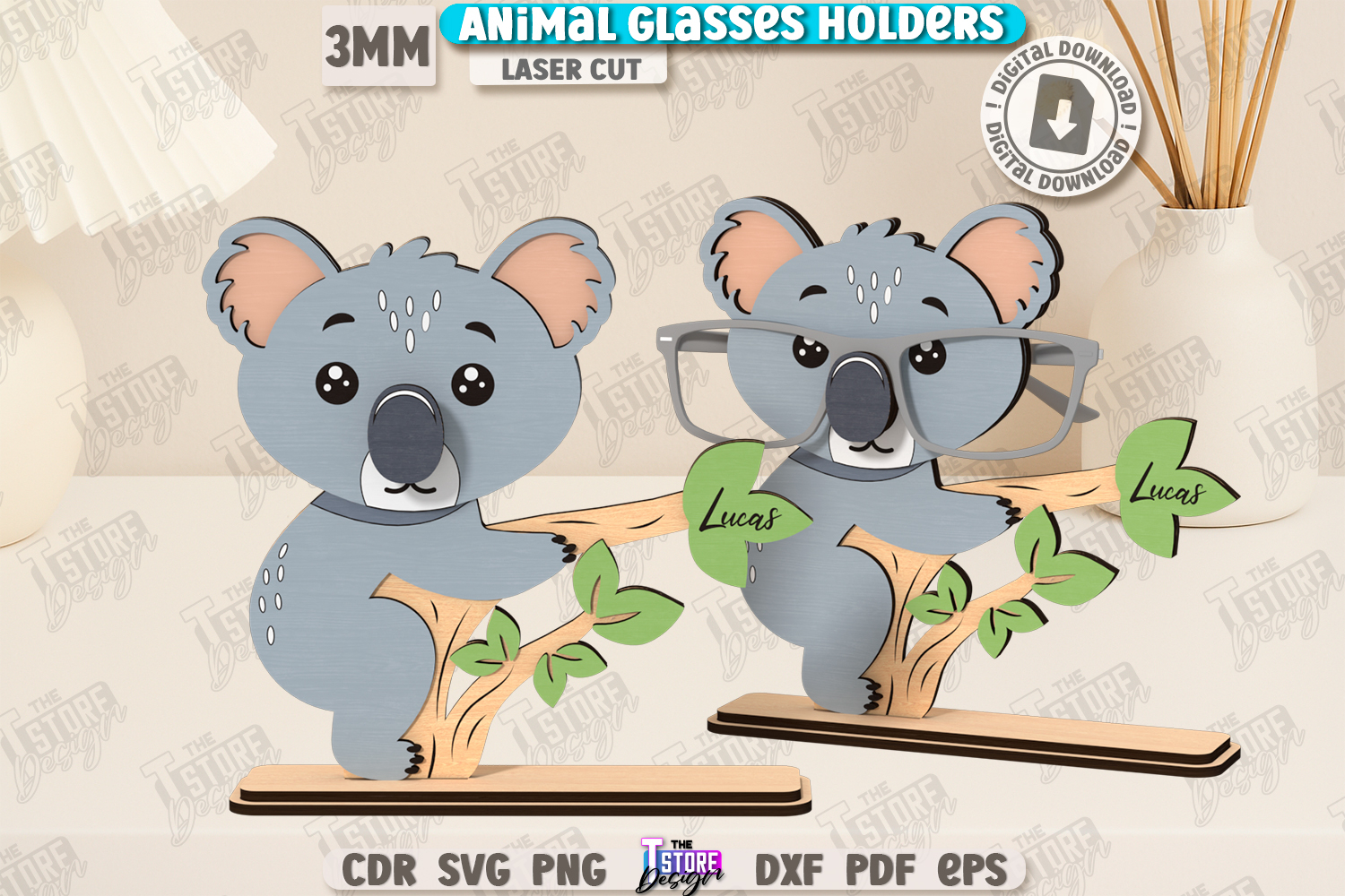 3D Glasses Holder Laser Cut | Eyeglass Stand | Sunglasses Holder | Desk Glasses Holder | Animals Design | Kids Laser | Table Eyeglass Stand | Koala SVG | CNC File