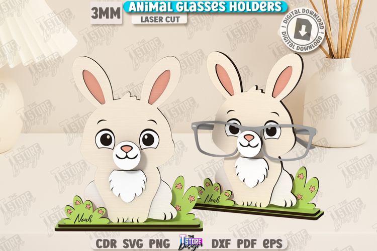 3D Glasses Holder Laser Cut | Eyeglass Stand | Sunglasses Holder | Desk Glasses Holder | Animals Design | Kids Laser | Table Eyeglass Stand | Bunny SVG | CNC File