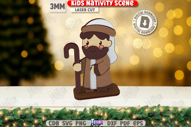 Kids Nativity Ornament Laser Cut | Sacred Christmas Ornaments | Christmas Eve | Holy Night | Nativity Scene | Christ of Born | Biblical Characters | Children's Design | Saint Joseph | Christmas Tree Toy | Shelf Sitter | CNC File