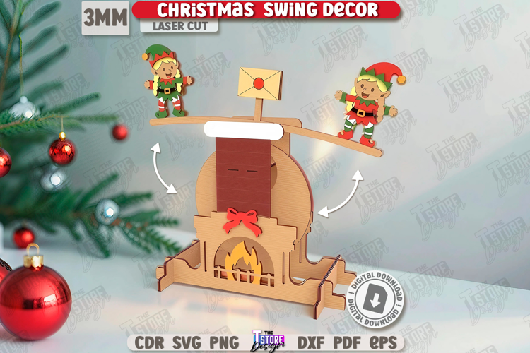 Christmas Swing Décor Laser Cut | Christmas Decorations | Merry Christmas | Christmas Laser | Childrens Room Decor | Home Décor | Christmas Present | Winter Holidays | Christmas Carousel | Xmas SVG | Christmas Characters | Kids Design | Elves | CNC File