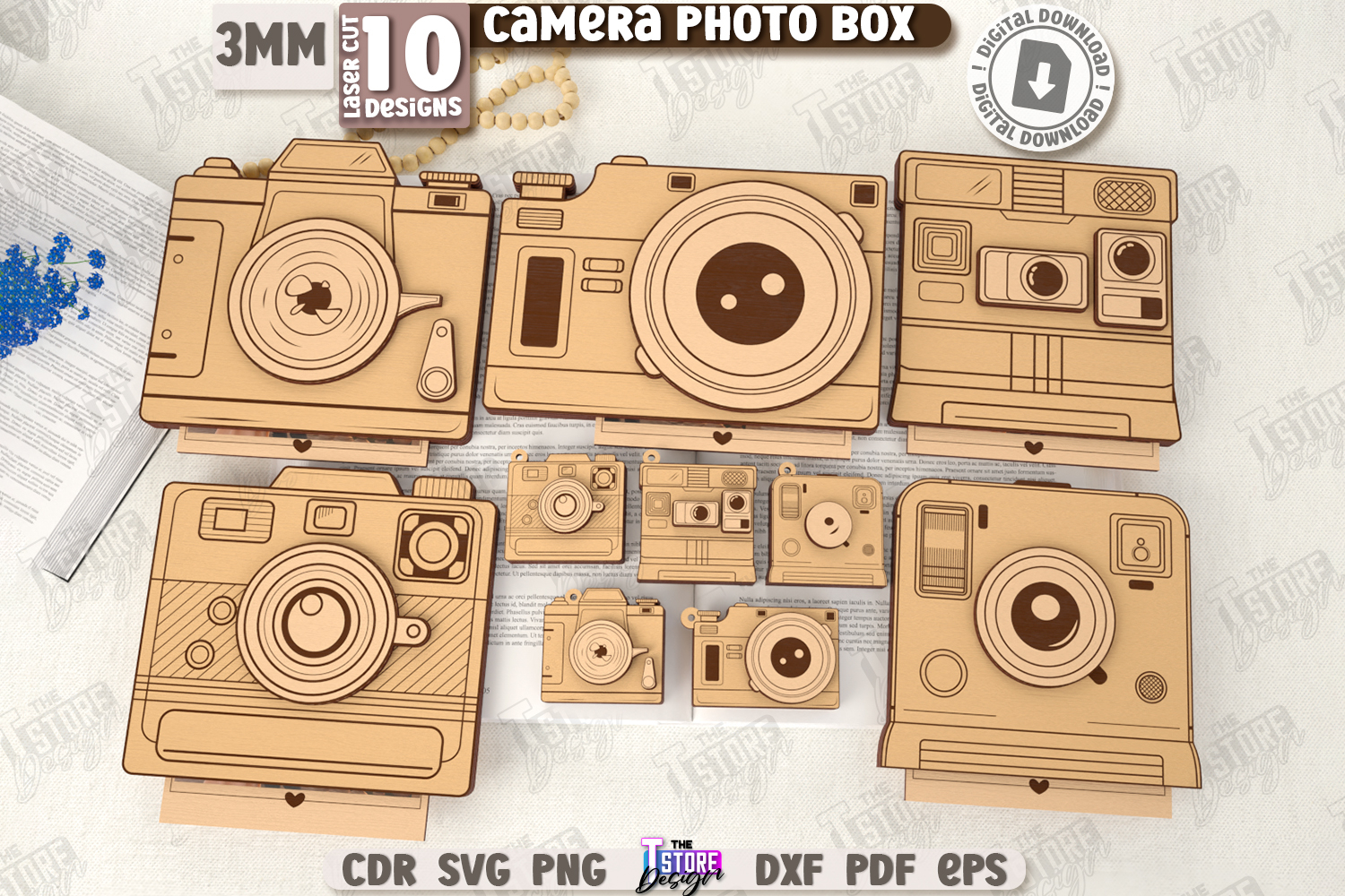 3D Camera Photo Boxes Laser Cut Bundle | Camera Shaped Boxes | Gift Idea | Decorative Camera Boxes | Layered Photo Camera | Birthday Gift | Photo Storage Boxes | Pop-Up Cards | Home Decor | CNC Files