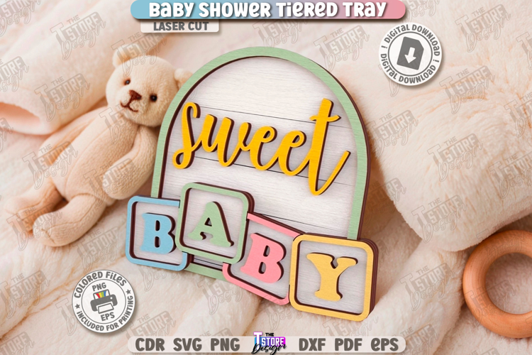 Baby Shower Tiered Tray Laser Cut | Baby Signs | Children Design | Neutral Tiered Tray Decor | New Born | Child Design SVG | Baby Boy | Baby Girl | Baby Sign | Sweet Baby SVG | CNC File