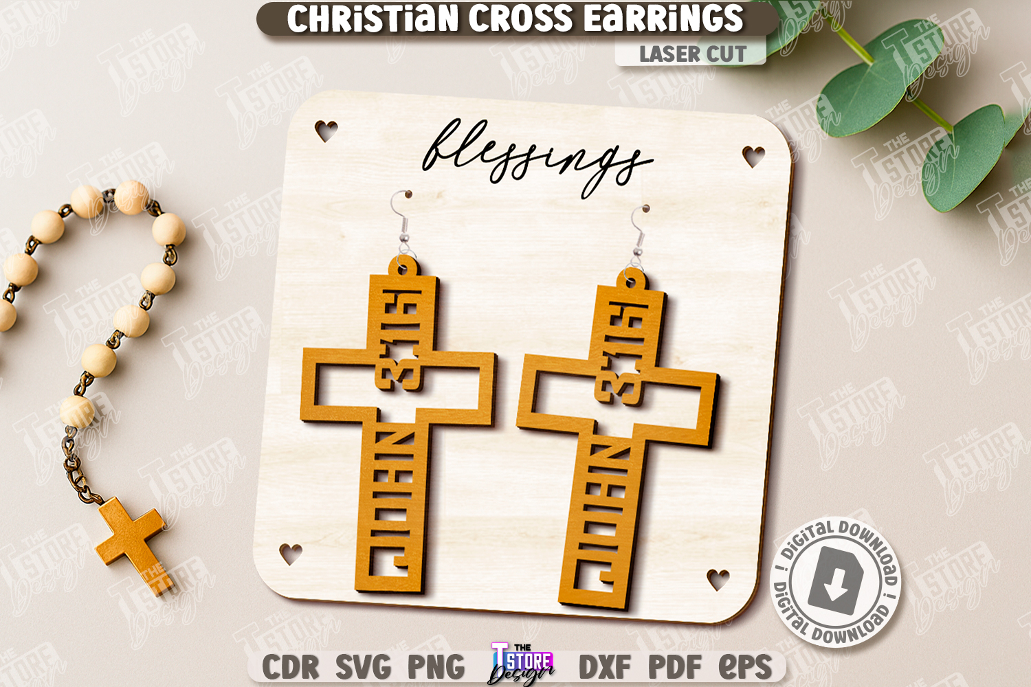 Christian Cross Earrings Laser Cut | Wooden Jewelry | Christian Accessories | Pendant Earrings | Digital Download | Christian Jewelry | Religious Accessory | 3D Laser | CNC File