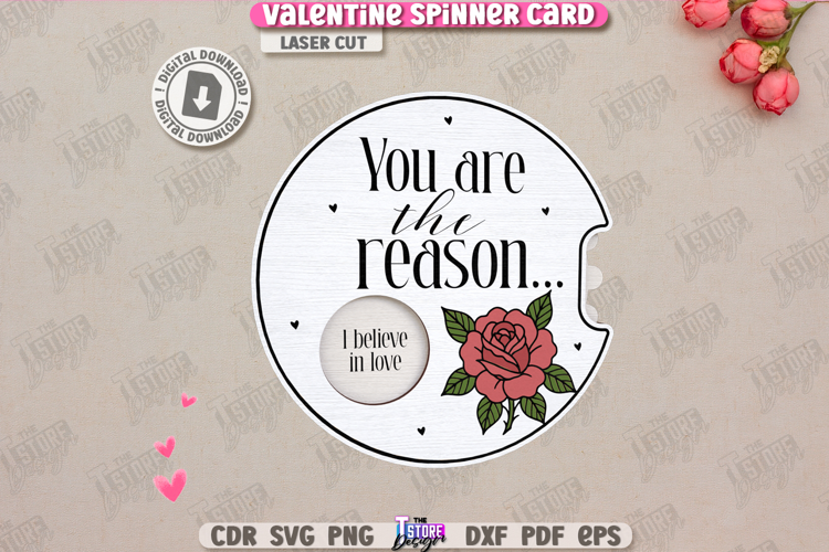 Valentine Spinner Card Laser Cut | Valentine’s Day Greeting Card | Happy Valentine’s Day | Cute Design | Love Day | 3D Valentine Card | Glowforge File | Holidays Gift | Valentine’s Gift Idea | 3D Laser | You are the Reason | CNC File