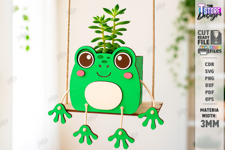 Swing Planter Laser Cut | Wooden Animal Planter Holders | Plant Pot | Hanging Planter | Decorative Planter | Home Décor | 3D Laser | Flower Holder | Home Garden | Home Decorations | Frog | CNC File