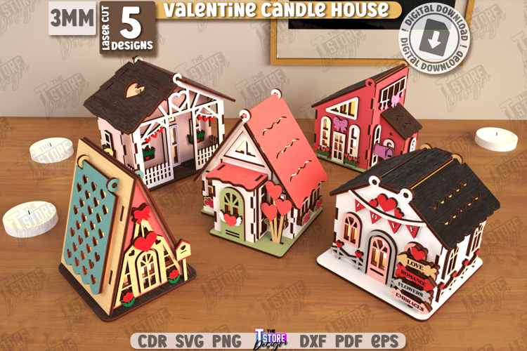 Valentine Candle Houses Laser Cut Bundle|Tea Candle Holders