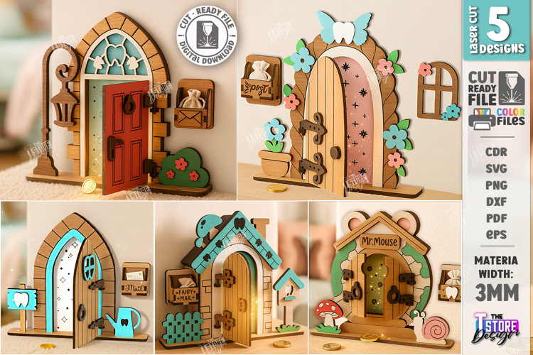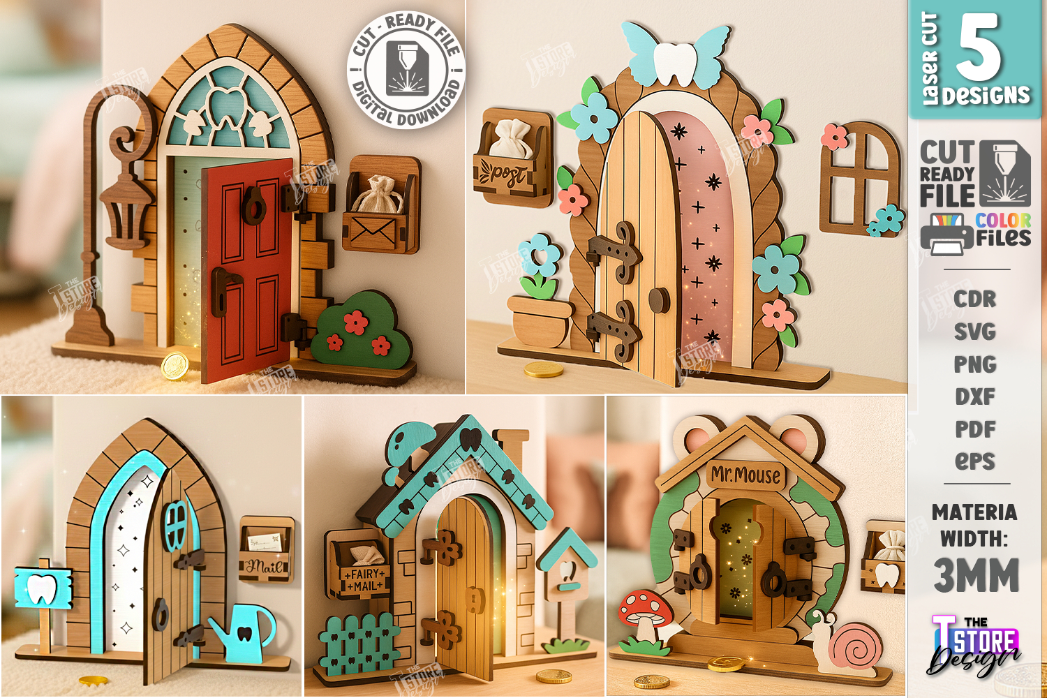 Tooth Fairy Doors Laser Cut Bundle | Children's Room | Wall Décor | Miniature Doors | Fantasy Décor | Kids Laser | Fantasy SVG | Fairy House | Magic Doors | CNC Files