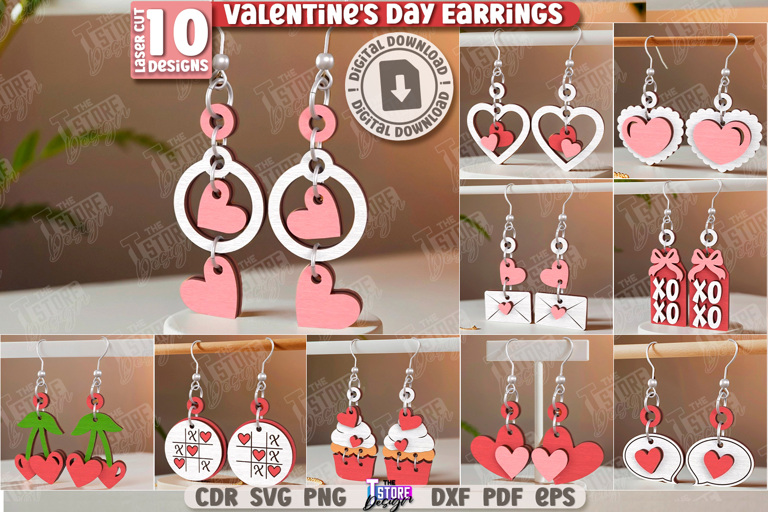 Valentine's Day Earrings Laser Cut Bundle | Pendant Earrings example image 1