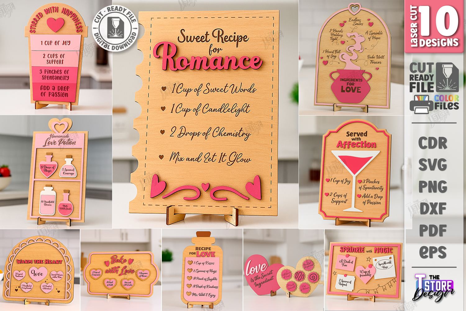 Valentine’s Day Boards Laser Cut Bundle | Recipe for Love SVG | 3D Decorative Boards | Kitchen Decor | Holidays Design | Home Décor | 3D Laser | CNC Files