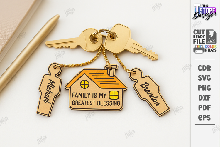 Family Keychain Laser Cut | Keychain Template SVG | Family Key Rings | Gift Idea | Keychains for Parents | Name Tags | Craft | Family is My Greatest Blessing | CNC File