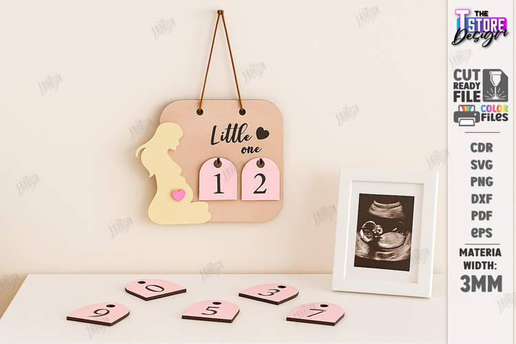Pregnancy Baby Weeks Countdown Laser Cut | Milestone Board | Pregnancy Announcement | Pregnancy Countdown | Home Decor | New Born | CNC File