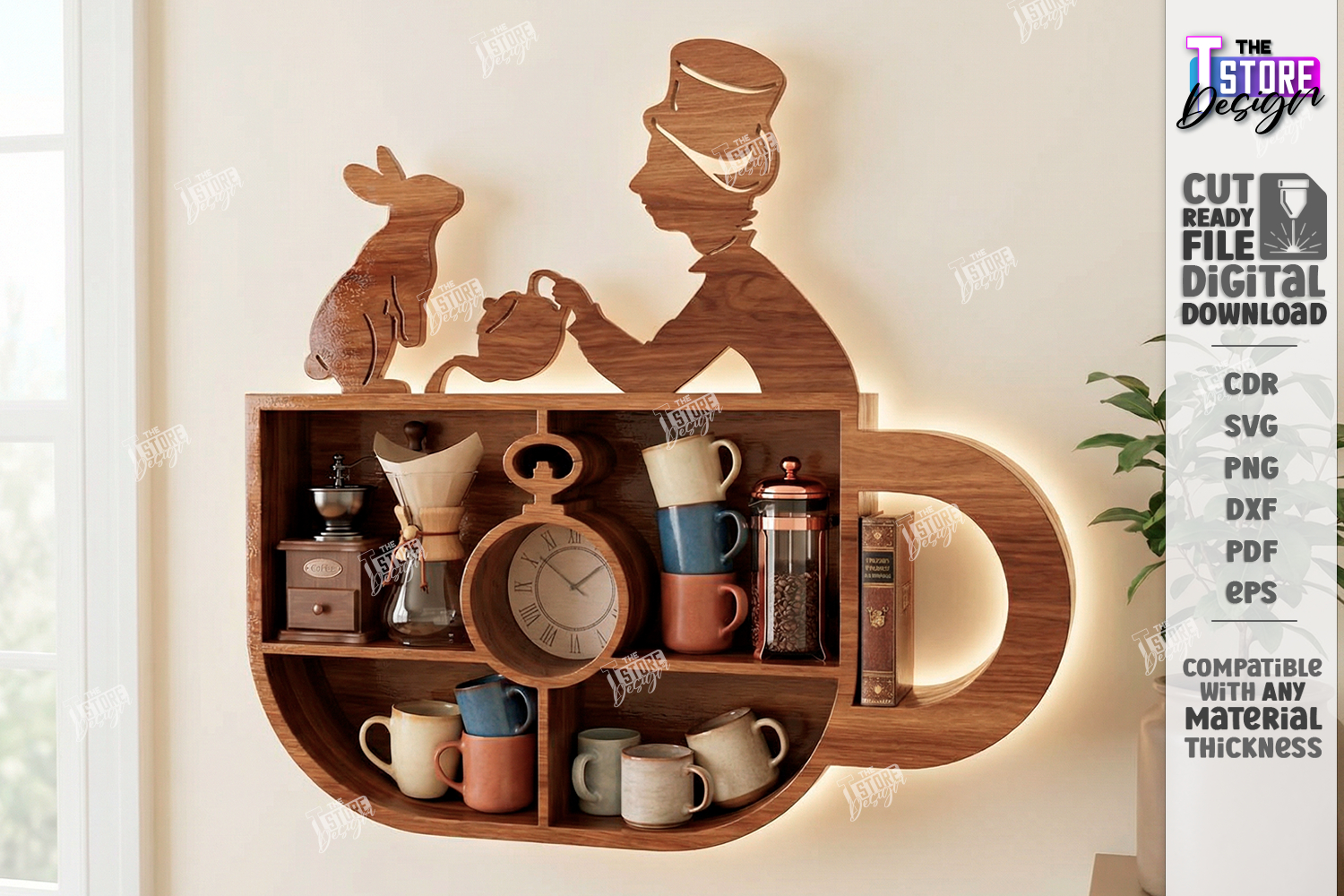 Modern Wall Shelf Laser Cut | Home Décor | Functional Art SVG | Living Room Décor | Decorative Wall Shelves | Wall Décor | Various Creative Shapes | Rustic SVG | Cup | CNC File