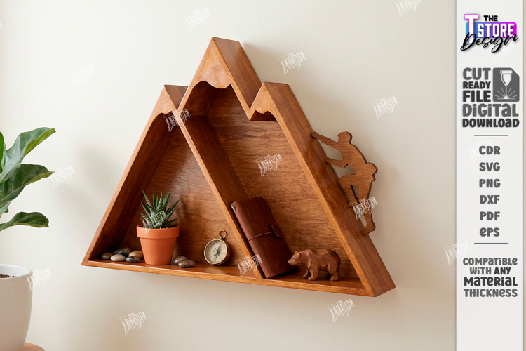 Modern Wall Shelf Laser Cut | Home Décor | Functional Art SVG | Living Room Décor | Decorative Wall Shelves | Wall Décor | Various Creative Shapes | Rustic SVG | Mountains | CNC File