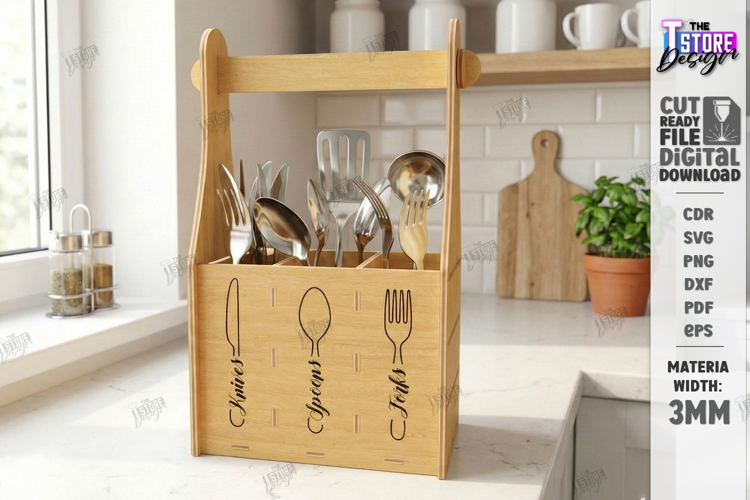 Glowforge Files Farmhouse Kitchen Decor Home Organization Kitchen Storage Utensil Holder Svg Xtool Utensil Caddy Svg Wooden Caddy Design 3mm Wood Projects Diy Kitchen Organizer Laser Cut