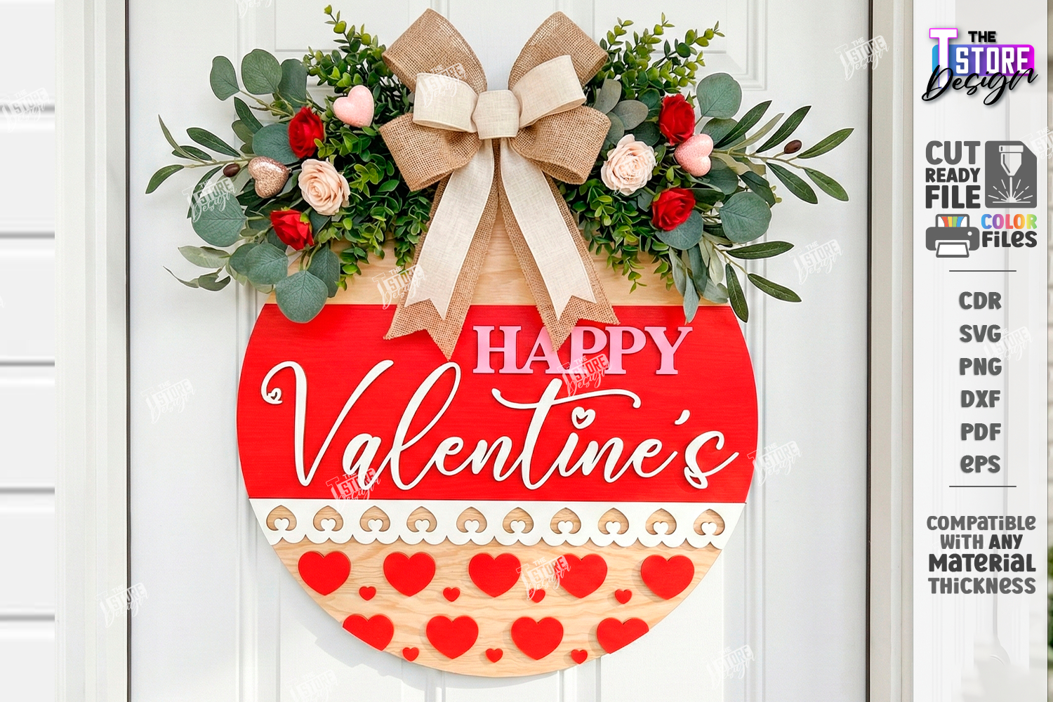 Valentine’s Round Door Hanger Laser Cut | Layered Door Sign example image 1