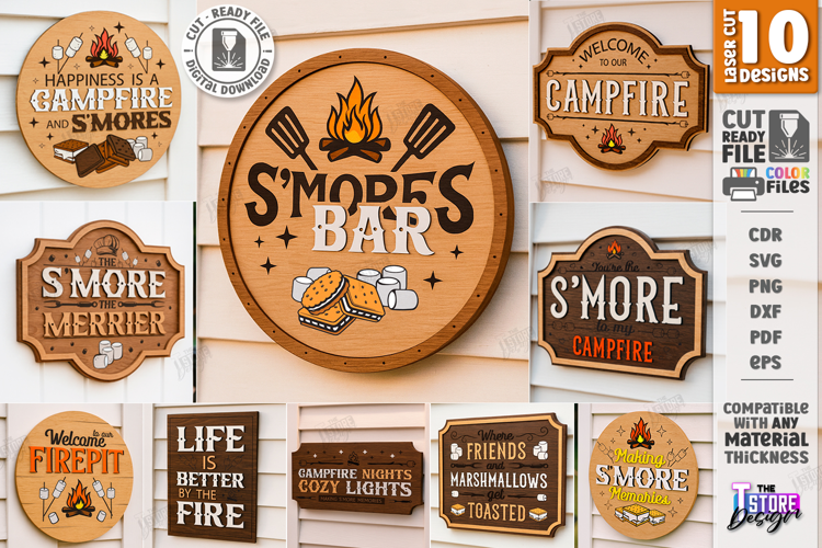 S’mores Station Signs Laser Cut Bundle | Wall Signs | Sign Boards | S’mores Bar Station Signs | Campfire S'mores Signs SVG | Outdoor Décor | Rustic Wood Signs | CNC Files