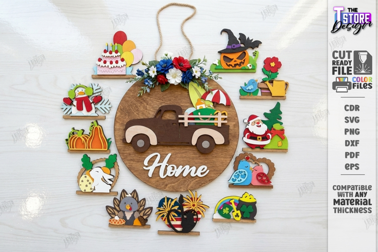 Interchangeable Truck Welcome Sign Laser Cut | Farmhouse Truck Door Hanger | Home Decor | All Seasons Interchangeable Sign | Ultimate Seasonal Welcome Sign | Wall Décor | Round Wall Board | CNC File