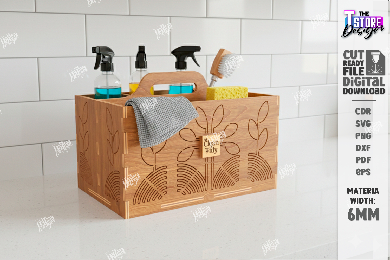 Cleaning Caddy Organizer Laser Cut | Wooden Storage Box | Household Cleaning Tools Carrier | Decorative Utility Caddy | Organize Clean Repeat | CNC File