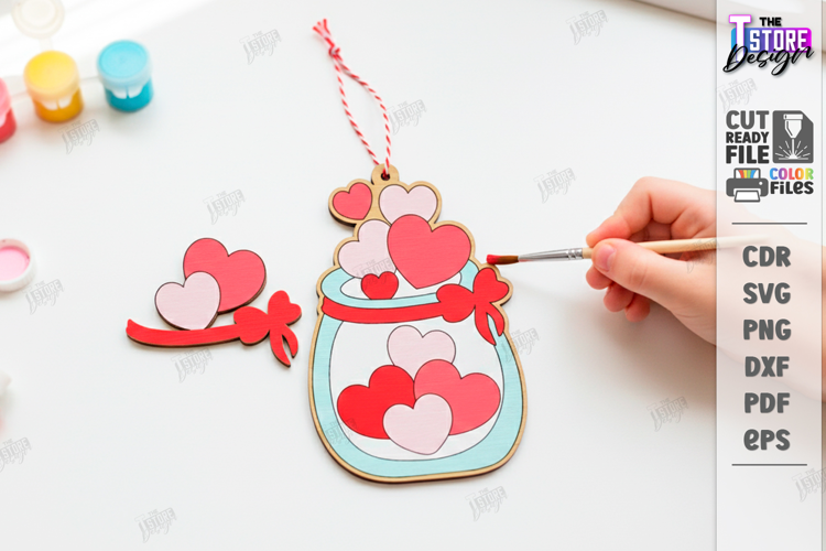 Valentine's Day Paintable Ornaments Laser Cut | DIY Kids Valentine Coloring Crafts | Valentine Wood Ornaments SVG | Layered Wood Paint Project Digital Download | Hearts SVG | CNC File