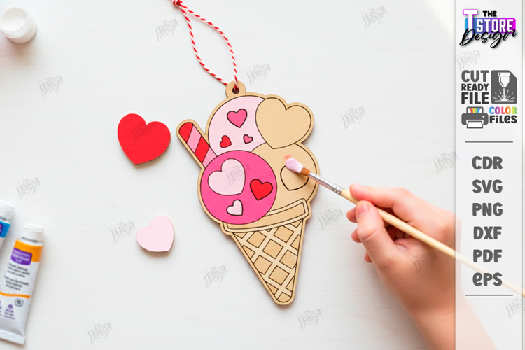 Valentine's Day Paintable Ornaments Laser Cut | DIY Kids Valentine Coloring Crafts | Valentine Wood Ornaments SVG | Layered Wood Paint Project Digital Download | Ice Cream SVG | CNC File