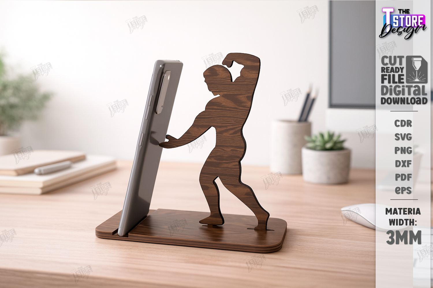 Sport Phone Stand Laser Cut | Gym and Fitness Smartphone Holders SVG | Desktop Mobile Docking Station | Laser Ready Wood Craft Files | Functional Athlete Shape Desk Decor | Cell Phone Stand Patterns | 3mm Plywood Laser Cut Designs | Bodybuilding SVG | CNC File