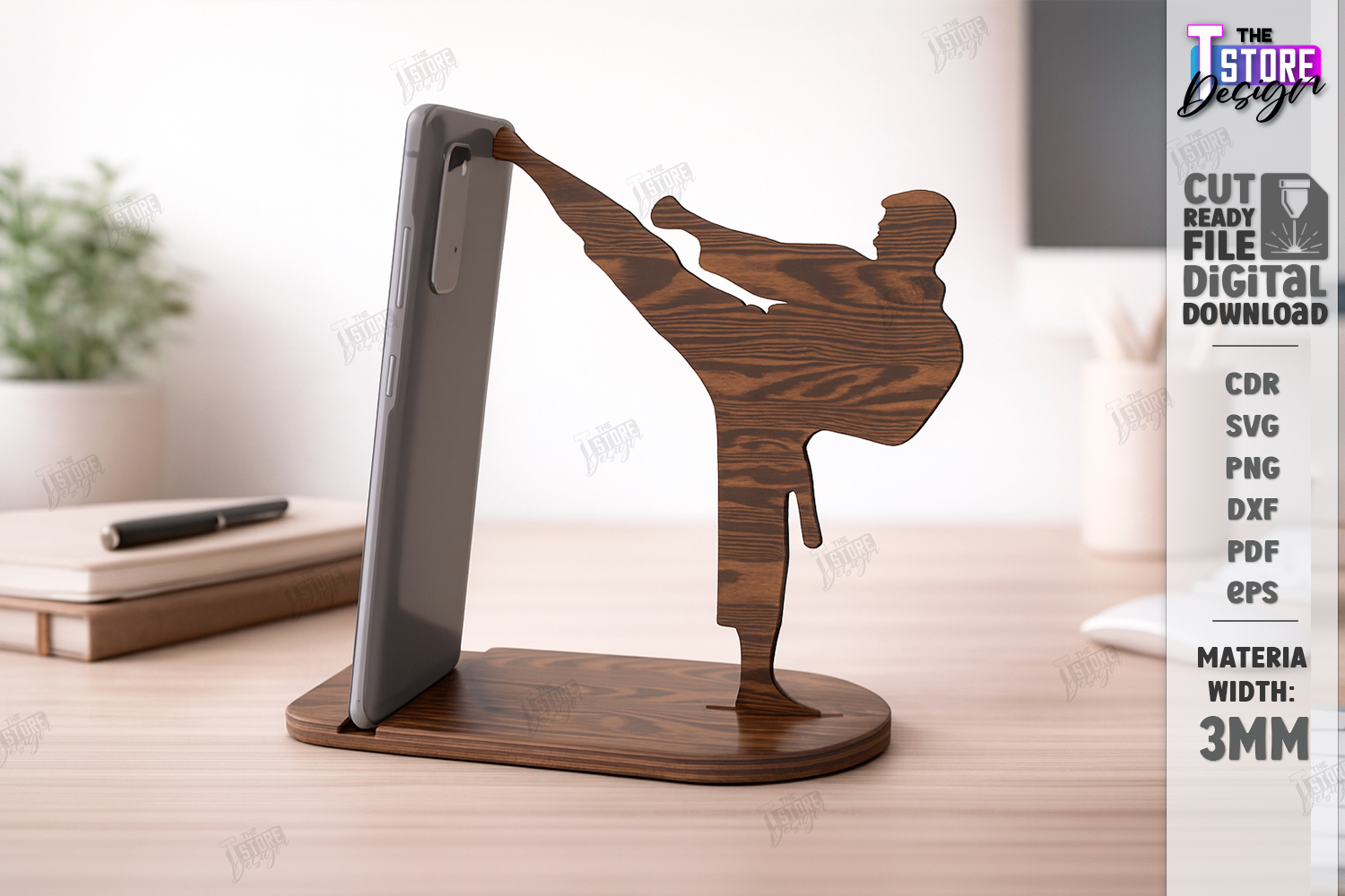 Sport Phone Stand Laser Cut | Gym and Fitness Smartphone Holders SVG | Desktop Mobile Docking Station | Laser Ready Wood Craft Files | Functional Athlete Shape Desk Decor | Cell Phone Stand Patterns | 3mm Plywood Laser Cut Designs | Karate SVG | CNC File