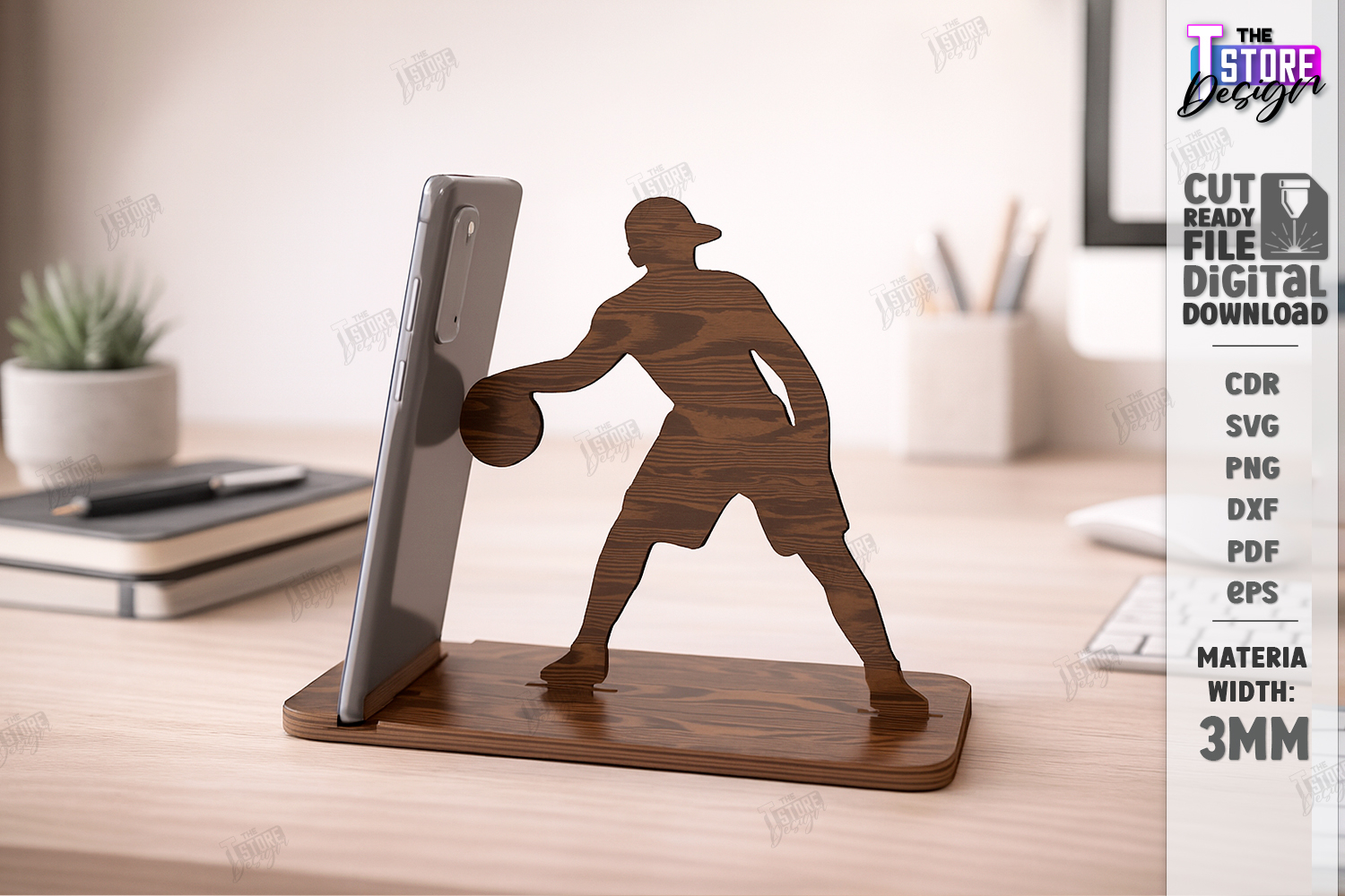 Sport Phone Stand Laser Cut | Gym and Fitness Smartphone Holders SVG | Desktop Mobile Docking Station | Laser Ready Wood Craft Files | Functional Athlete Shape Desk Decor | Cell Phone Stand Patterns | 3mm Plywood Laser Cut Designs | Basketball SVG | CNC File