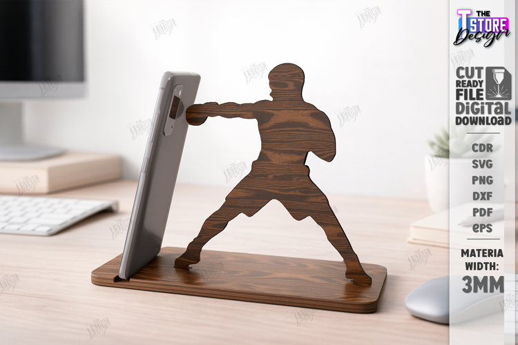 Sport Phone Stand Laser Cut | Gym and Fitness Smartphone Holders SVG | Desktop Mobile Docking Station | Laser Ready Wood Craft Files | Functional Athlete Shape Desk Decor | Cell Phone Stand Patterns | 3mm Plywood Laser Cut Designs | Box SVG | CNC File