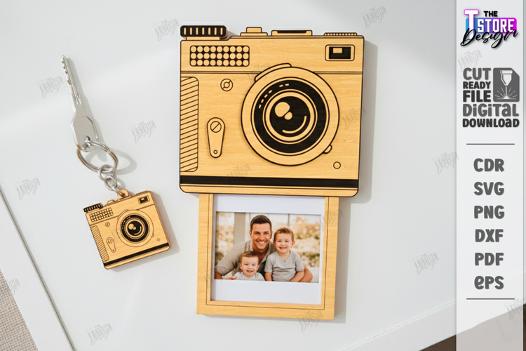 Retro Camera Photo Frame Laser Cut | Vintage Polaroid Style Picture Frames | Laser Cut Keychain and Stand Designs | Photo Holder DXF | Engraved Camera Frames | 3mm Plywood Instant Photo Keepsake | Personalized Photographer Gift Laser Files | Interactive Sliding Photo Frame | Digital Download | CNC File