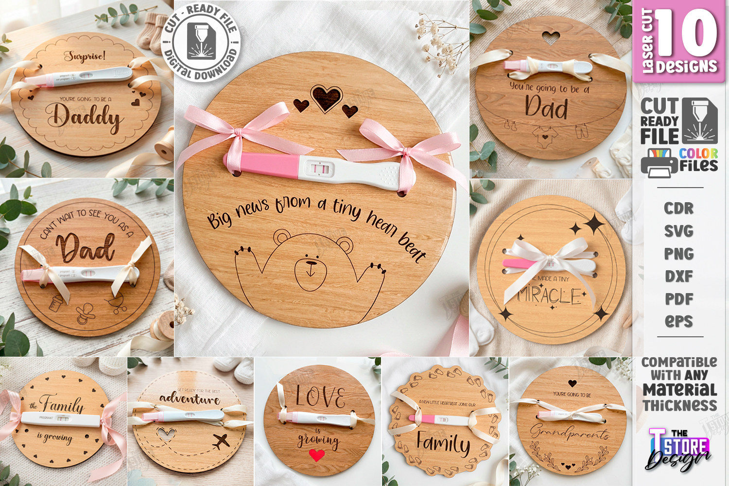 Pregnancy Test Reveal Disc Laser Cut Bundle | Surprise Pregnancy Announcement Wood Signs | You're Going to be a Daddy | Baby Reveal | Custom Baby Reveal Gift for Grandparents DXF | Keepsake Files | The Family is Growing | Pregnancy Announcement | Family Sign | CNC Files