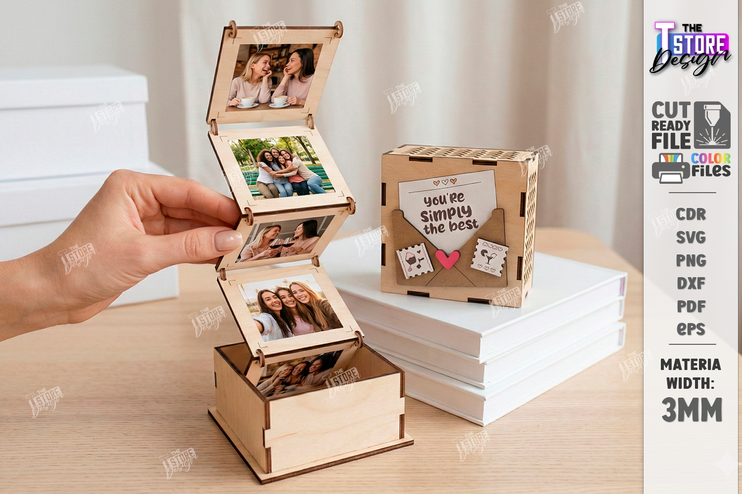 Wooden Galantines Day Photo Memory Box Laser Cut | Friendship Picture Box Laser Cut Files | Anniversary Keepsake Box DXF | Love Story | Love Photo Gift SVG | Happy Valentine's Day | Surprise Box Pattern | 3D Wood Memory Box | Photo Box Glowforge Ready | 3mm Plywood Laser Cut Designs | Personalized Gift | CNC File