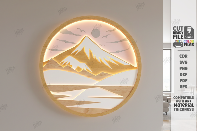 3D Layered Wall Art Laser Cut | Circular Nature Landscape SVG | Multi Layer Shadow Box Designs | Wooden Round Scenic Decor | Glowforge Files | Modern Home Interior Art | Circular 3D Layered Vector Templates for Laser Cutting | DIY Scenic Wall Hanging Project | Digital Download | CNC File