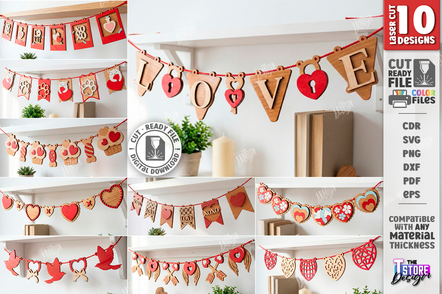 Valentine's Day Garlands Laser Cut Bundle | Romantic Banner