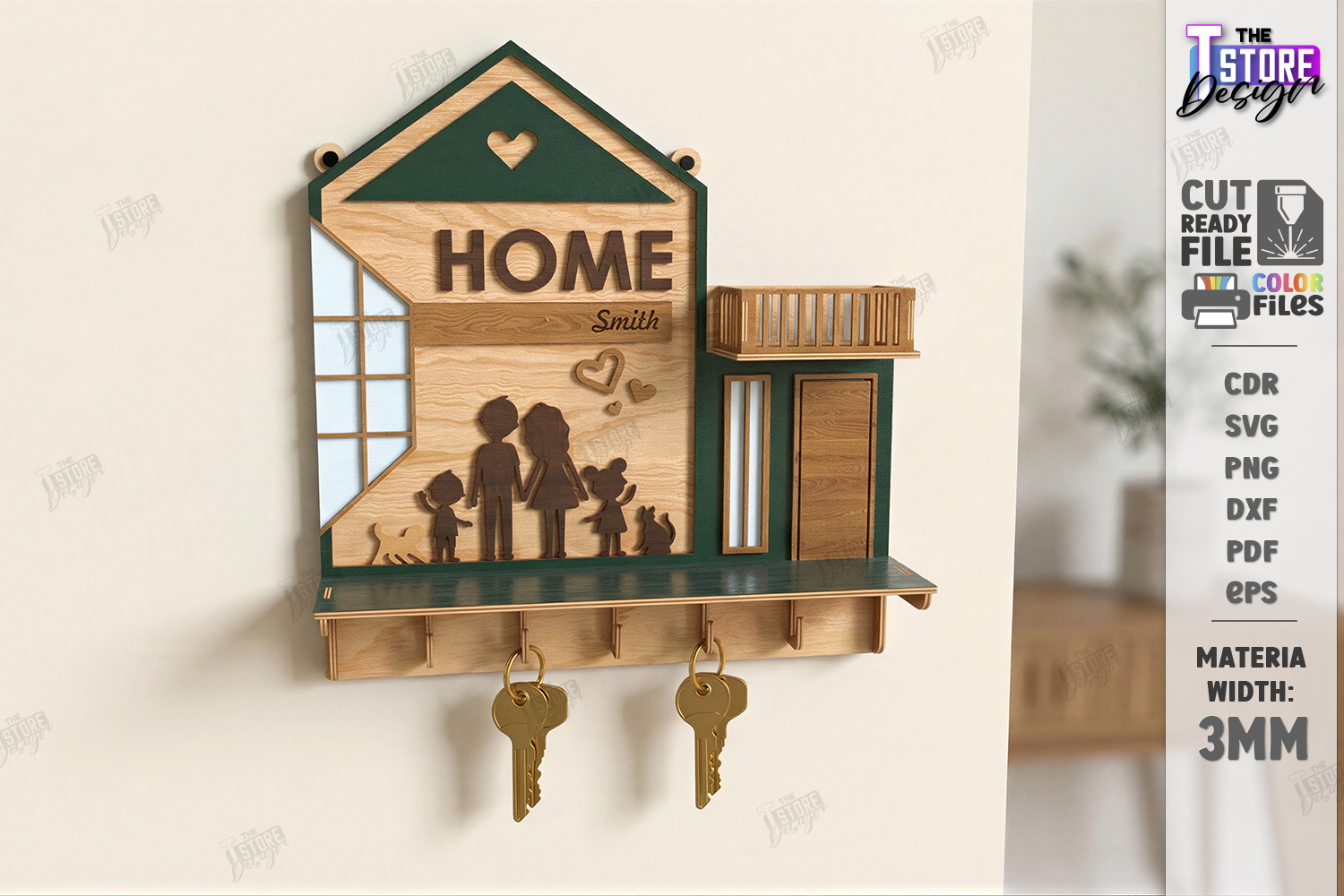 Family Key Holder Laser Cut | Decorative Wall Key Organizer