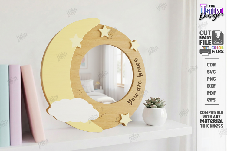 Affirmation Mirror Frame Laser Cut | Motivational Wall Mirror Decor SVG | Positive Self Care Mirror Cling DXF | Mirror Decor SVG | Inspirational Quote Wooden Mirror Border Files | Nursery and Bathroom Mirror Decoration | Laser Ready Affirmation Station Wall Art | Children's Room Decor | CNC File