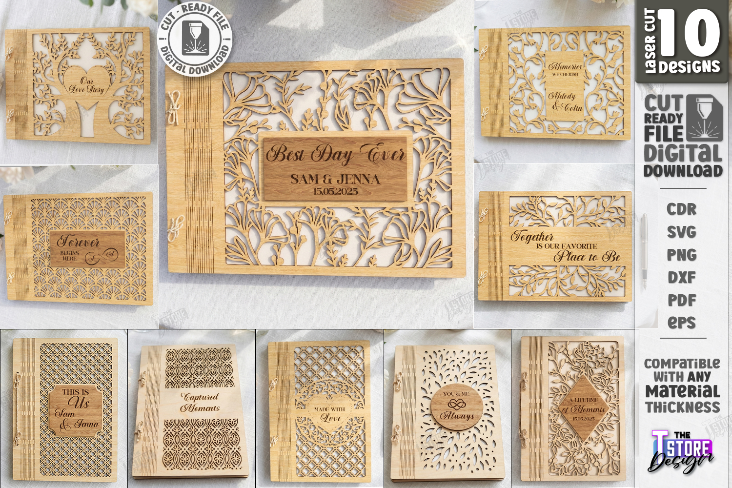 Wedding Guest Books Laser Cut Bundle | Personalized Photo Album SVG | Decorative Wooden Notebook Cover | Floral Wedding Guestbook Designs SVG | Best Day Ever Memory Book Laser File | Anniversary Journal Cover Elegant Lace | Wedding Book SVG DXF | Love Story Guestbook Laser Pattern | Compatible with Any Material Thickness | CNC Files