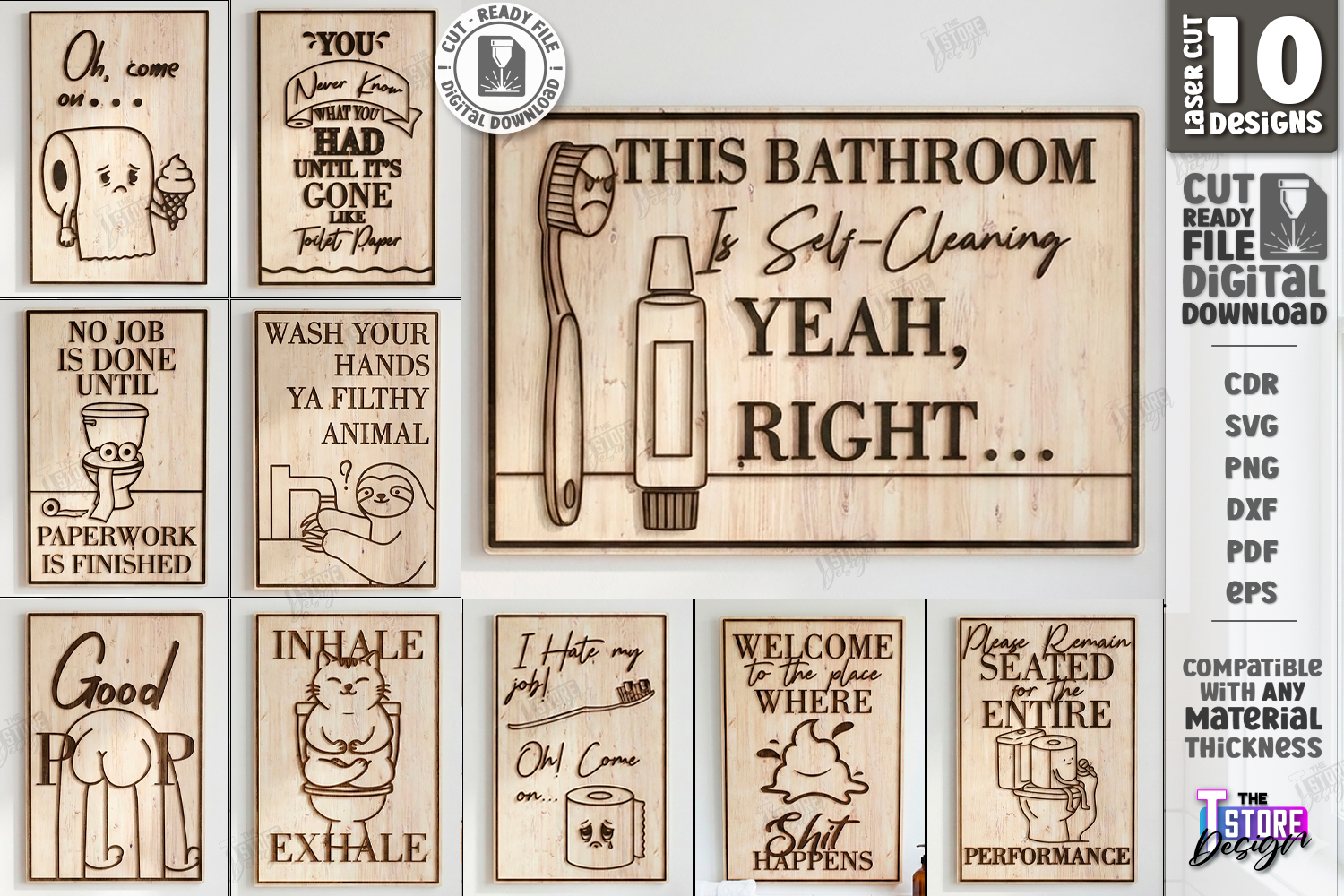 Funny Bathroom Wall Art Laser Cut Bundle | Sarcastic Toilet Signs SVG | Humorous Restroom Decor for Laser Cutting | Bathroom Quotes SVG | Wall Art Laser File | Home Décor | Bathroom Art SVG DXF | Inhale Exhale Cat Toilet Pattern | Sassy Bathroom Wall Decor for Any Material Thickness | Craft Project | Rustic SVG | CNC Files