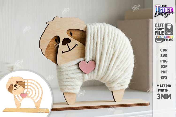 Yarn Wrapped Animals Laser Cut | Wood Craft Templates for Kids | Yarn Craft SVG | DIY Nursery Decor | Sensory Toy DXF | Interactive Children Activity Laser File | 3mm Plywood Animal Cutouts | Glowforge Ready Design | Sloth SVG | CNC File