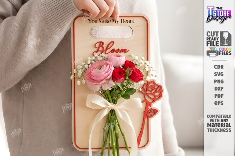 Similar Design Products to Valentine Flower Holder Card Laser Cut | Bouquet Holder SVG