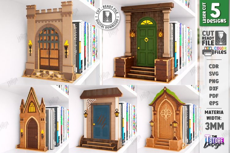 Decorative Door Bookends Laser Cut Bundle | 3D Layered Fairy Door SVG | Miniature Book Nook Shelf Decor | Styles Fantasy Door Bookends SVG | Magic Portal Book End Laser File | Vintage Style Library Decor | Laser Cutting Layered Wood Bookend SVG DXF | Storybook Door Shelf Holder Laser Pattern | 3mm Plywood Home Library Accessory | CNC Files
