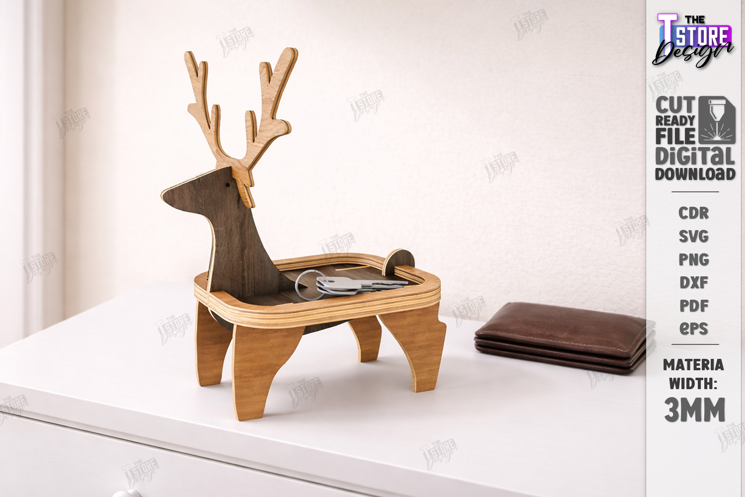 Key Holder Tray Laser Cut | Desktop Storage | Storage Tray Designs | Desktop Organizer Glowforge File | Sunglasses Stand | Valet Tray Patterns | 3mm Wood Entryway Decor | Laser Ready Digital Download DXF PDF | Organizer | Deer | CNC File