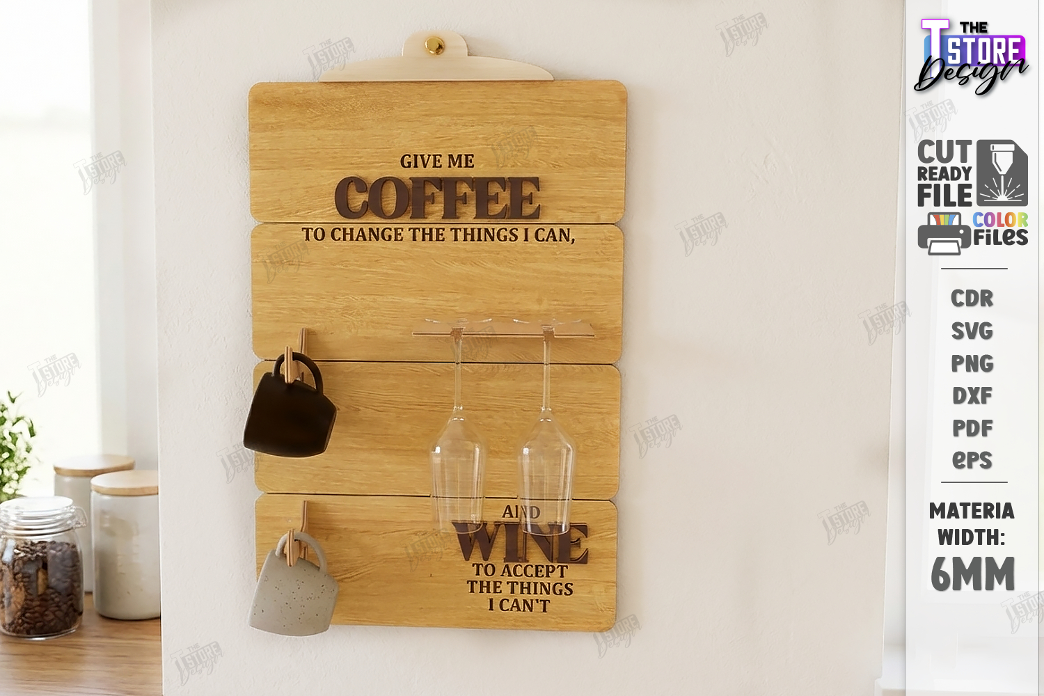 Coffee Mug and Wine Glass Holder Laser Cut | Wall Decor SVG