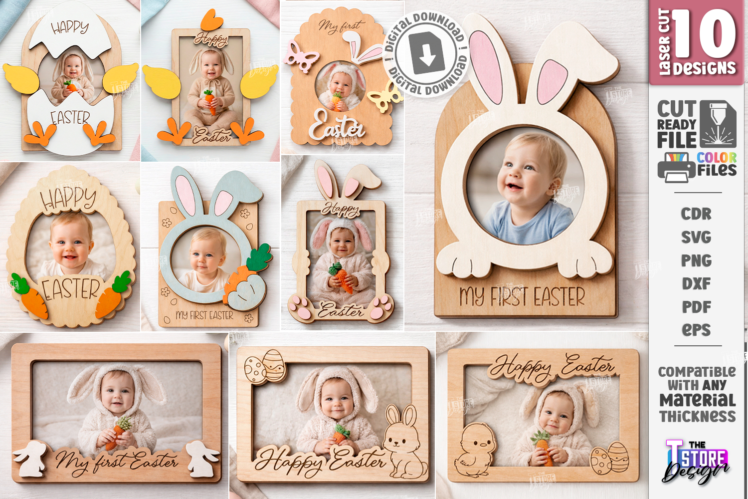 My First Easter Photo Frames Laser Cut Bundle | Baby's First Easter SVG | Happy Easter Picture Frame CNC Vector | Rabbit & Chick Photo Decor | Kids Laser | Home Décor | Newborn Easter Gift Laser Ready | Kids Room Decor Template | Glowforge Ready Designs | Designs Easter Frames SVG DXF PDF | Baby First Easter