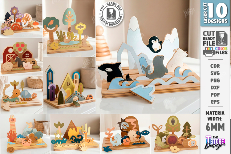 Modular Wooden Block Laser Cut Bundle | Nature and City Diorama Designs | Educational Toy SVG for Kids | Animal and Landscape Stacking Blocks | Glowforge Ready Cut Files | Wildlife Ocean Safari Dinosaur Farm Scenes | 6mm Plywood Toddler Toy SVG | Interactive Play Set Digital Download | Kids Laser CNC Files | Toys and Games | Wooden Scene