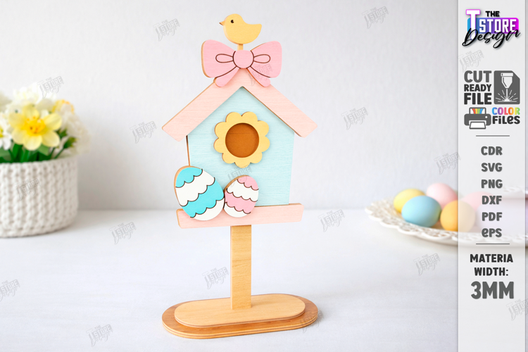 Easter Shelf Sitter Laser Cut | Cute Easter Wood Decorations | 3mm Plywood Laser Cut Files | Birdhouse SVG | Glowforge Ready Easter Decor | Spring Shelf Sitter Designs | Layered Wood Easter Ornaments | Digital Cut File for Laser | Happy Easter | CNC File
