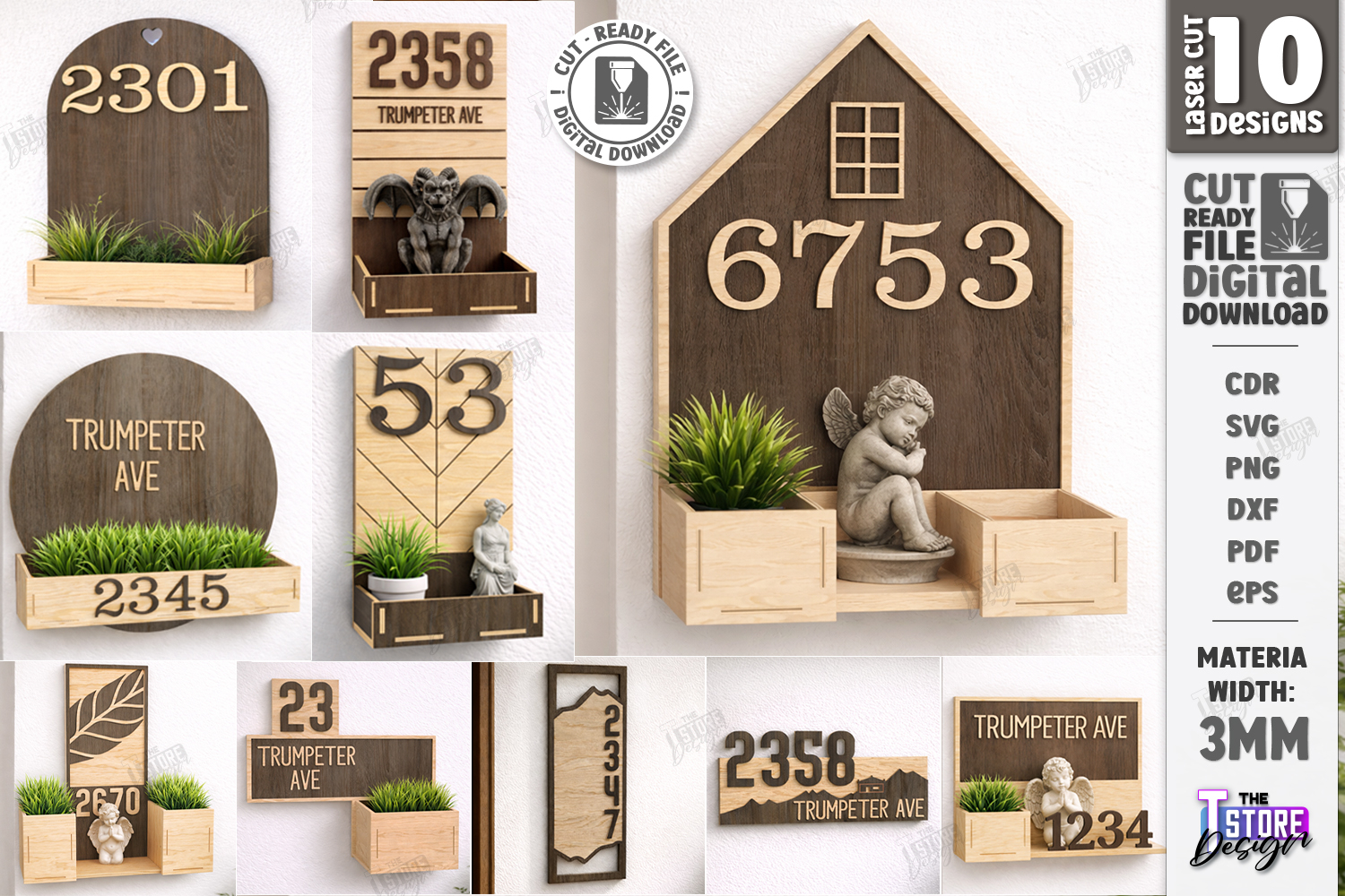 Modern House Number Signs Laser Cut Bundle | 10 Address Plaque Laser Cut Files Bundle | Home Decor | 3D Layered Vertical House Number with Planter DXF | Wall Signs | Custom Street Name Signs for Porch | Minimalist Home Address Decor | Porch Decor | Glowforge Ready 3mm Wood Patterns | Personalized Housewarming Gift | CNC Files