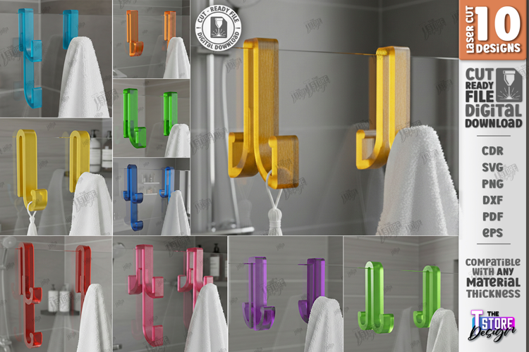 Similar Design Products to Shower Glass Door Hook Laser Cut Bundle | Acrylic Towel Hook
